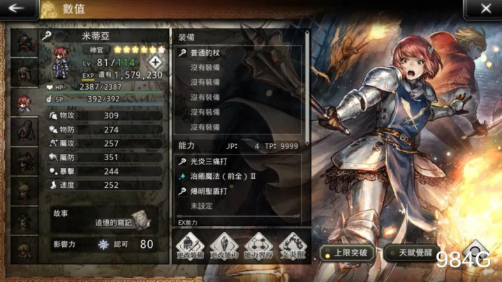 目前国服应该开6星但还没开的O追忆与圣炎角色不到10个,选出4个角色复刻确实有点难度,G哥大概给朋友们列一下值得单独复刻的角色,O追忆利夏尔、Ex雷比娜、希格娜,圣炎泽妮亚,其余角色都撑不起单独的复刻池。