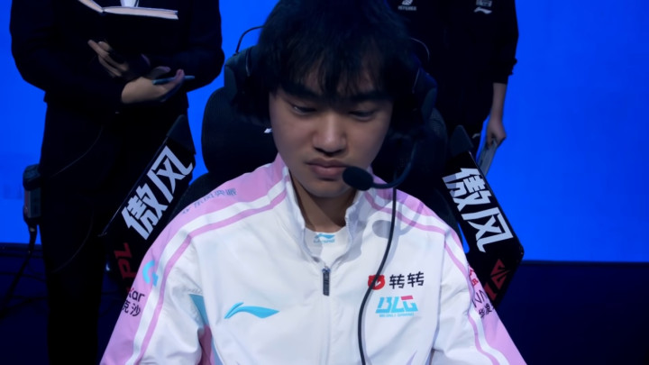第二局选出中单妖姬,尽管上路打出精彩逃生操作,但这场JDG的双C发挥更为出色,HongQ发条发力,搭配GALA的轮子妈成功统治团战端,将比赛拖入到决胜局。