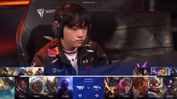 双方首局比赛Kanavi选出打野蔚,开始不断针对上路,结果Doran招牌狼母的状态很好,多次精彩拉扯逃生或者配合Oner反杀,Oner也帮Doran报仇抓死Zeus,后Kanavi选择针对下路越塔打出1换2。