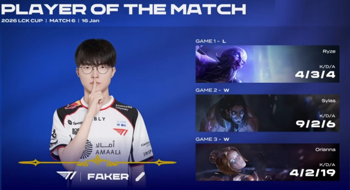 第二局Faker又祭出自己的另一个传奇英雄塞拉斯,本局与Oner一起双双化身战神,开局不久的中路混战中Oner就在残血状态下配合队友反杀多人,打出梦幻开局。