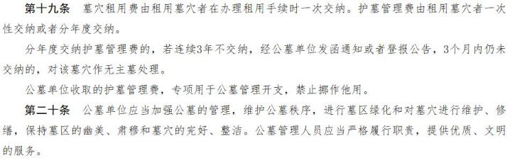 该规矩第十五、十九条还泄露,“墓穴的使用年限最长不得超越50年。”