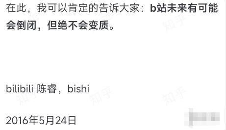 值得一提的是,2016年,B站CEO陈睿还是发布公告称“B站改日有可能会倒闭,但毫不会变质”。