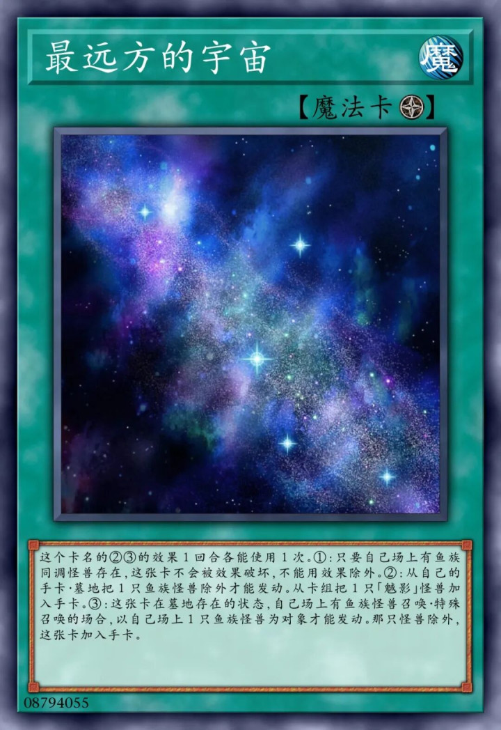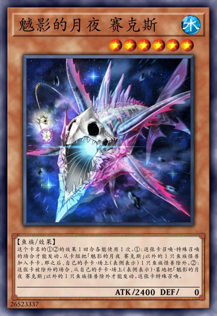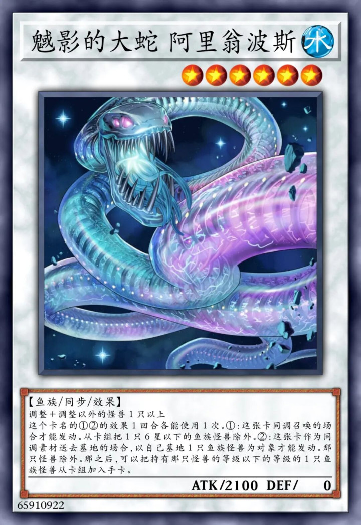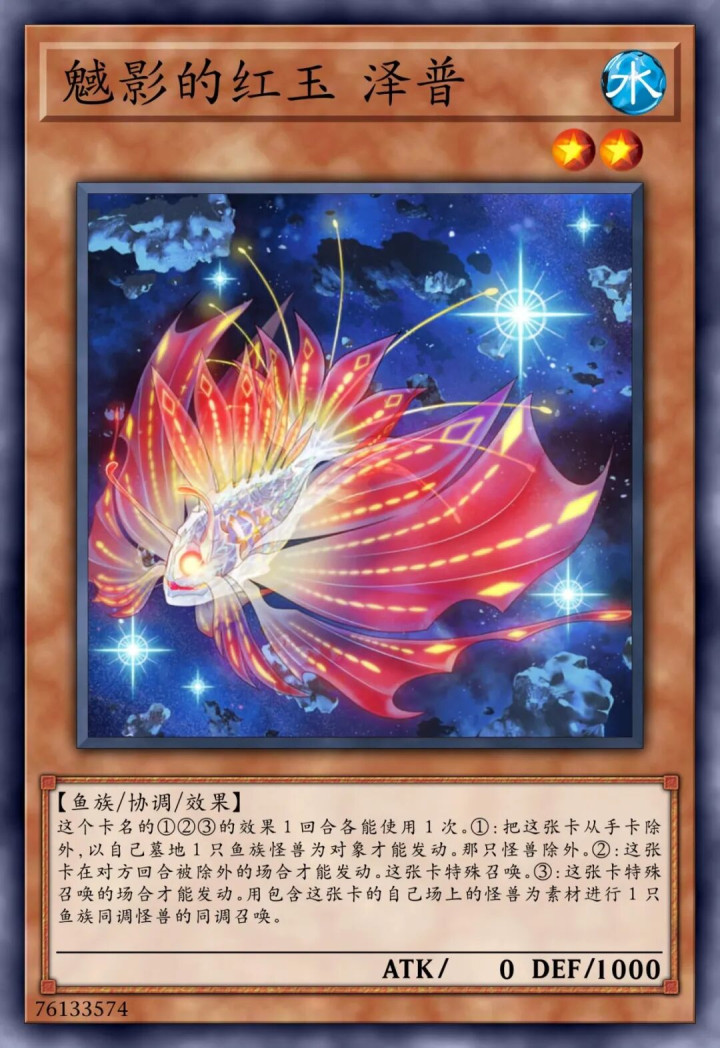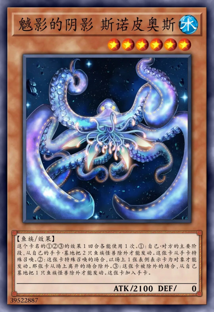 游戏王“魊影(异鱼)”系列可以说是鱼族相当强的卡组了,该系列原型是栖息在深海与外太空的巨型太空生命体,系列名“Ghoti”是对英语拼写规则的调侃,中文译名“游魊”则结合“魊”字的发音做了双关设计,而怪兽命名大多源自不同语言里“鱼”的变形词汇。