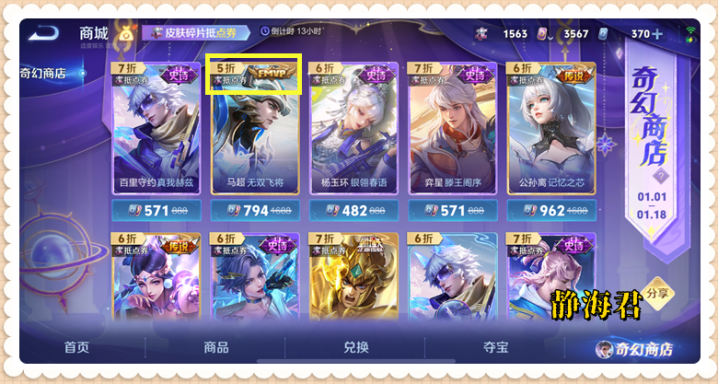 在第一次开启奇幻商店的时候,系统会根据不同的商品,刷新出5折、6折、7折、8折和9折这5种不同的折扣。