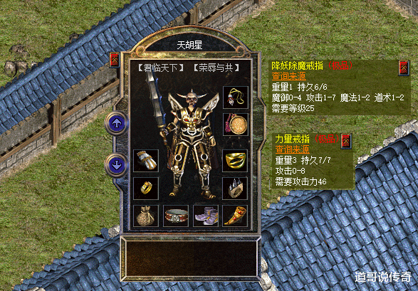 第四,天花板戒指如上图所示,这对戒指真没啥好说的,毕竟它们是火遍新百区的巅峰战戒,攻7降妖属性逆天,攻8力量傲视全服,这对戒指兼具魔御属性和攻击属性,强大到令人瑟瑟发抖。综合来看这一身装备代表了952服战士攻防一体穿搭的天花板级别,各位老伙计是否想来一套呢?