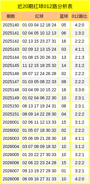 双色球第2026008期开奖,红球:06、09、16、27、31、33,蓝球:10。其中红球012路比为4:2:0,蓝球开出1路号码。