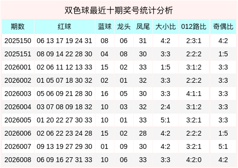 红球大小比为3:3,奇偶比为4:2,三区比为2:1:3,蓝球开出大数、偶数。