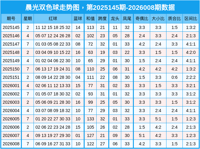 双色球第2026008期红球奖号为:06 09 16 27 31 33 ;蓝球10。红球号码质合比为1:5,奇偶比为4:2,三区比为2:1:3。