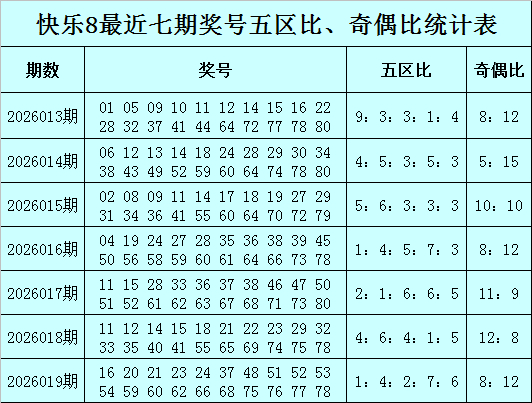 福彩快乐8第2026019期开奖回顾:16 20 21 23 24 37 48 51 52 53 54 59 60 62 66 68 75 76 77 78,其中奖号五区比为1:4:2:7:6,奇偶比为8:12,012路比为9:4:7。
