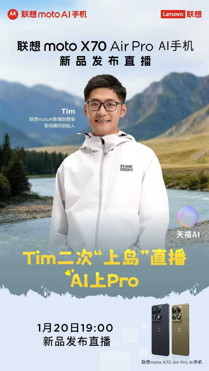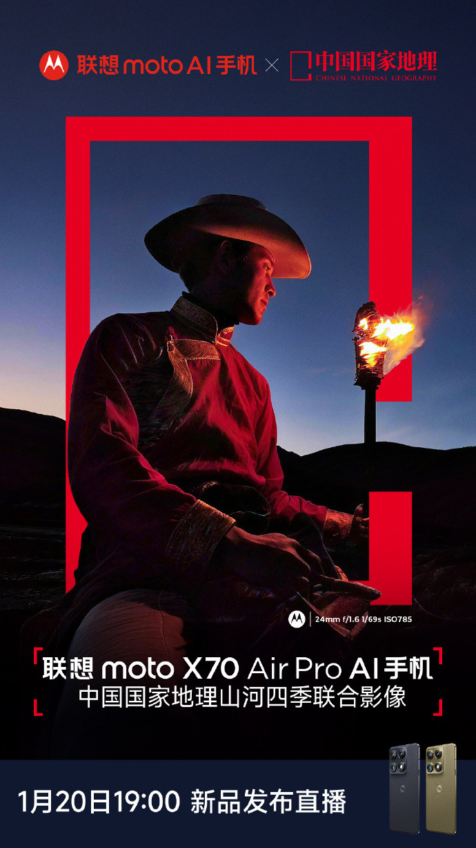 联想moto X70 Air Pro定档1月20日19:00举办新品发布会,新机以“轻薄全能”为核心定位,搭载骁龙8 Gen5处理器,存储版本最高达24GB+1TB。机身厚度控制在7mm内,重量186g,采用航空级金属中框与山羊绒质感后盖,兼顾颜值与耐用性,支持IP68+IP69级防尘防水。影像方面,联合中国国家地理打造双8K AI影像系统,配备LYT-828大底主摄及3X潜望长焦,辅以云台级防抖技术。同时搭载5100mAh电池、90W快充、BOSE调校双扬,标配手写笔与专属AI键,目前已可预约。