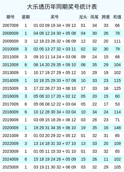 后区信息分析:经过历年同期数据分析,本期后区开出大大数的可能性较高,预测后区号码为09、12。