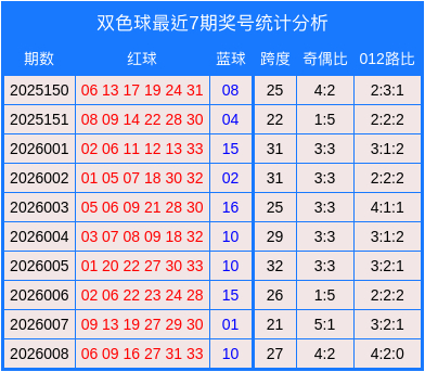 上期开奖号码的红球跨度为27,奇偶比4:2,012路比为4:2:0。