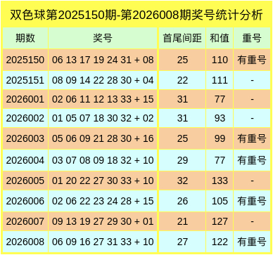 上期开奖:双色球第2026008期奖号为:06、09、16、27、31、33 + 10。