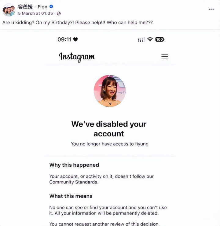 关于也曾转型作念了网红的容羡媛来说,这个账号不仅是个东说念主酬酢平台,更是她共享生计与责任的主要渠说念。她多年来在账号上发布无数施行,包括移居加拿大后的生计点滴以及家庭平方。账号一会儿被停用,让她多年累积的施行与粉丝关系险些在通宵之间清空,也让她的网罗作事受到赫然影响。