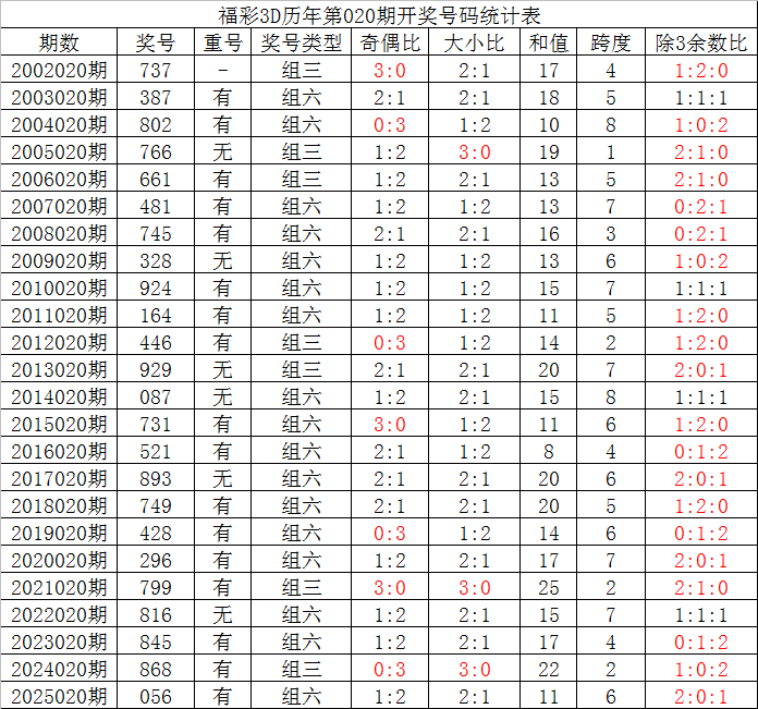 其中,组三号码开出7次,组六号码出现17次,上期奖号为组六号码,本期预计继续开出组六号码。