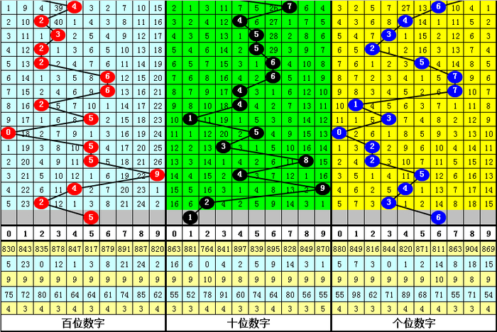 百位:上期开出奖号为偶数小 号:2,分析最近7期走势,该位分别开出:奇数大号:5、偶数小 号:0、奇数大号:5、奇数大号:5、奇数大号:9、偶数小 号:4、偶数小 号:2,其中奇数走势热出,大号走势活跃,本期百位关注奇数大号出现。