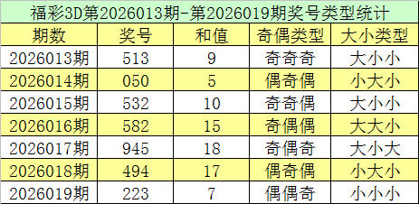 福彩3D第2026019期回顾:奖号为223,奖号奇偶比为1:2,大小比为0:3,和值为7,类型为组三。