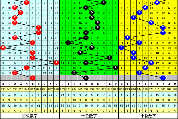 百位上期开出号码2,下降了2个点,本期预计反向上升,参考号码5。