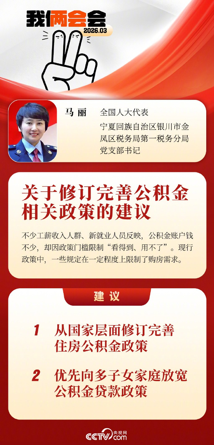 3月5日,据央视网音讯,宇宙东谈主大代表马丽在调研中发现,“看赢得、用不了”正成为公积金使用中的痛点,爱游戏体育存在首付比例门槛较高、贷款次数认定过于严苛、多子女家庭优惠战术缺失,开云app以及“商转公”、“组合贷”确定不解等问题。
