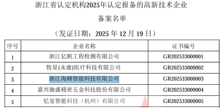 凭证企查查信息,海蜂智能竖立于2023年9月18日,业务范围涵盖智能机器东说念主的研发、东说念主工智能行业利用系统集竖立业、智能机器东说念主销售等。该公司于2025年12月被认定为高新技能企业,当今领有常识产权61项,爱游戏体育其中专利15项。